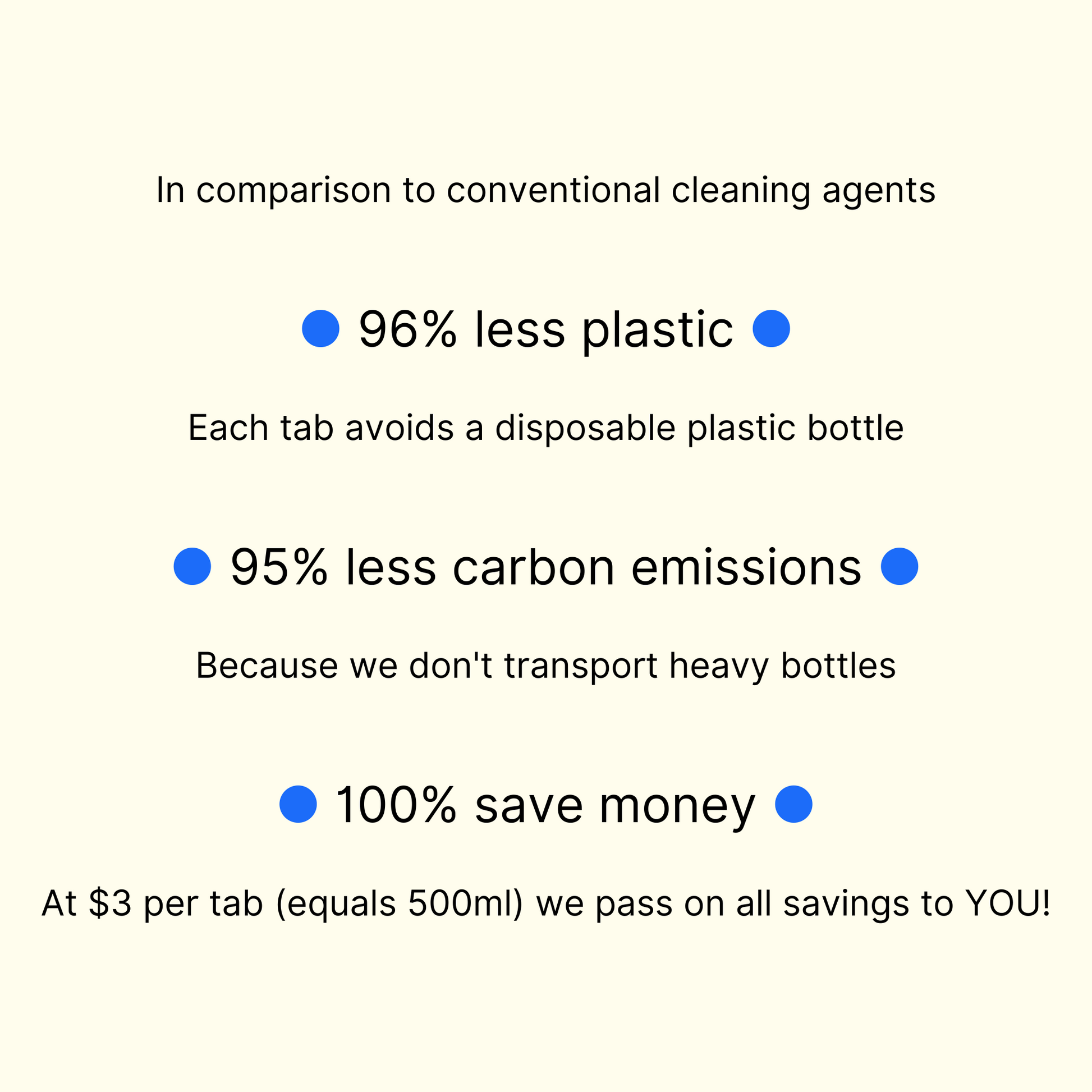 Just like everyone else in Australia I always bought my cleaning products at my local supermarket. I feel terrible when I think about all the plastic I have thrown away throughout the years. Every month I try to use less and less single-use plastics. These cleaning tabs have helped me take a big step in achieving this goal. Thank you for this amazing invention!